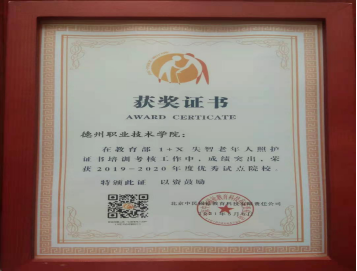 5月8日,教育部1+X失智老年人照护职业证书试点院校考核工作暨2020年度优秀试点院校表彰会在西安成功召开,beat365因在2020年度培训考核工作中成绩突出,获得“教育部1+X失智老年人照护证书考核工作优秀试点院校”荣誉称号。