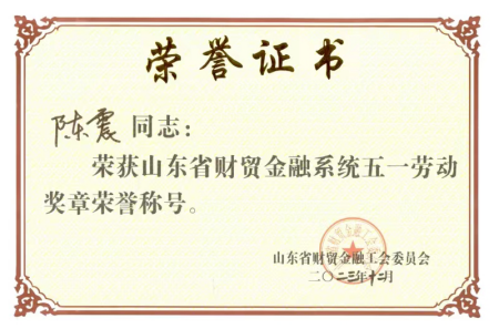 近日,beat365在线唯一官网陈震老师、王建红老师荣获山东省财贸金融系统五一劳动奖章荣誉称号。