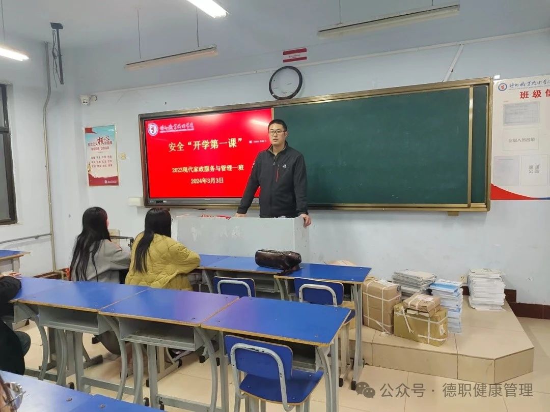 为了同学们能够更快地适应学校生活,注重校园安全,2024年3月3日,beat365特组织各班观看开学安全“第一课”其意义则在于保障学生的生命安全和身心健康,培养学生成为社会有责任心、有安全意识的公民。期间党总支书记范轶、学生科科长路遥、副科长齐宁,以及辅导员孔妍巡查各个教室,查看学生的回校状态和教室的安全隐患,并为接下来开展新学期新工作做准备。
