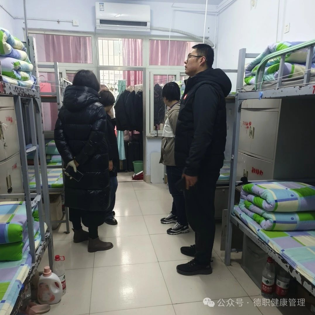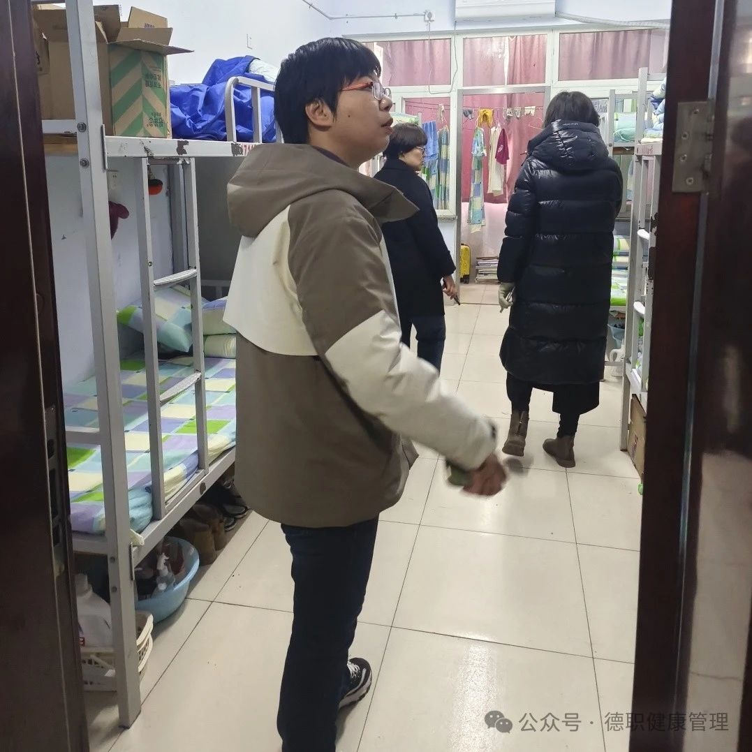 为进一步加强学生宿舍安全卫生教育及管理,消除安全隐患,共同营造卫生整洁的学习生活环境,3月4日上午,beat365开展寝室安全卫生大检查活动,党总支书记范轶带领综合科科长林玉凯以及学生科科长路遥、副科长齐宁深入学生宿舍。