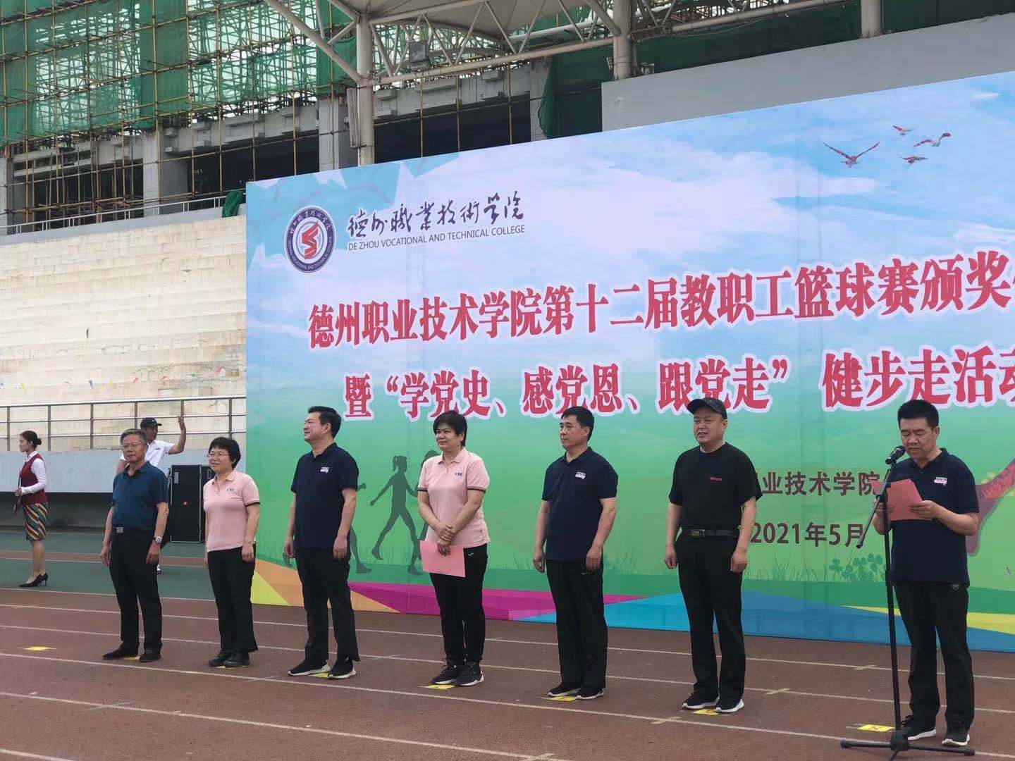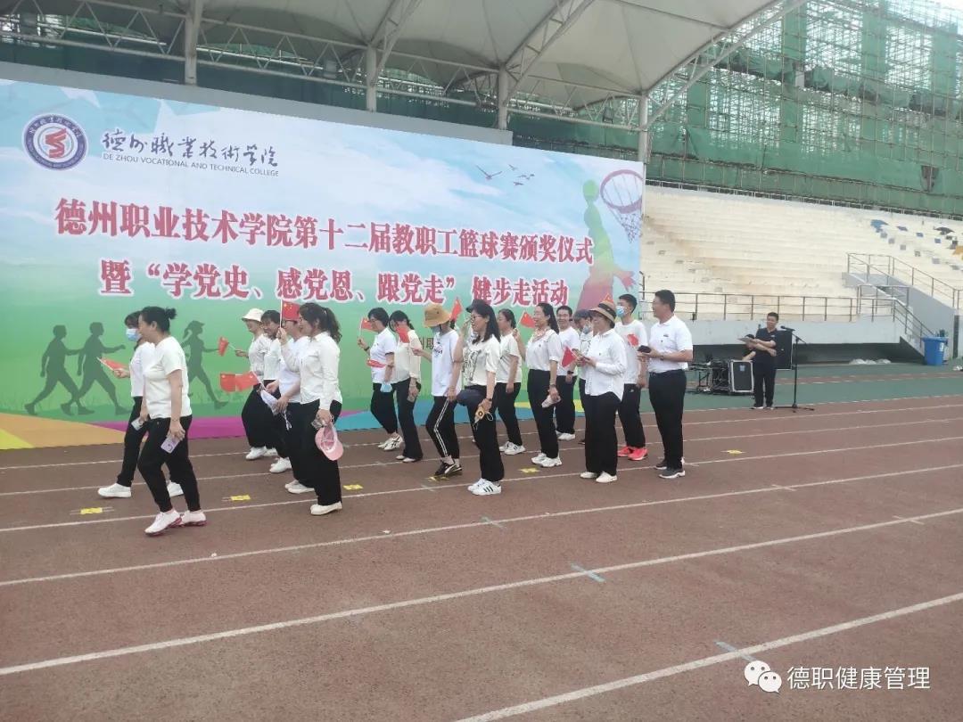 为深刻铭记中国共产党百年奋斗的光辉历程,丰富党史学习教育主题实践活动,5月27日,beat365在线唯一官网在田径场举行“学党史、感恩党、跟党走”主题健步走活动。由校党委书记樊兆杰,校党委委员、工会主席周爱红,校党委委员、副院长殷淑英,校党委委员、纪委书记聂长义,校党委委员、副院长多建民,校党委委员、办公室主任郭士武等领导及学校各处室负责人、各系书记、主任、科长等领导教师出席本次活动。