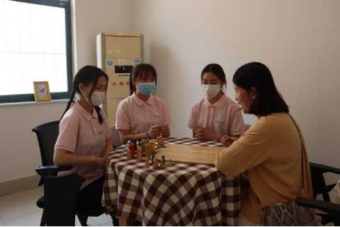 学习结束后,社区的老人们陆陆续续来到了活动现场,为消除老人们的心理顾虑,宋晓荔老师运用心理格板技术帮助老人们释放压力,感受快乐。同时,给智慧养老服务与管理专业的学生讲解格板技术要领,让同学们亲身体验、实际操作,提升专业技能。