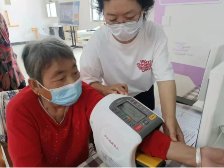 最后,优护万家的志愿者为老人们进行了血压心率健康检测。