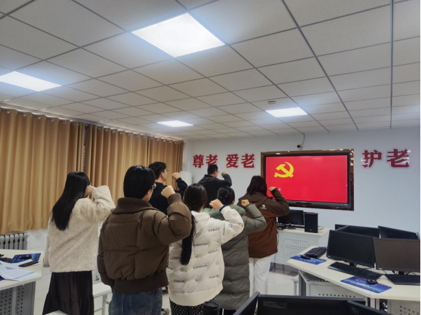 首先,奏唱国歌,重温入党誓词。