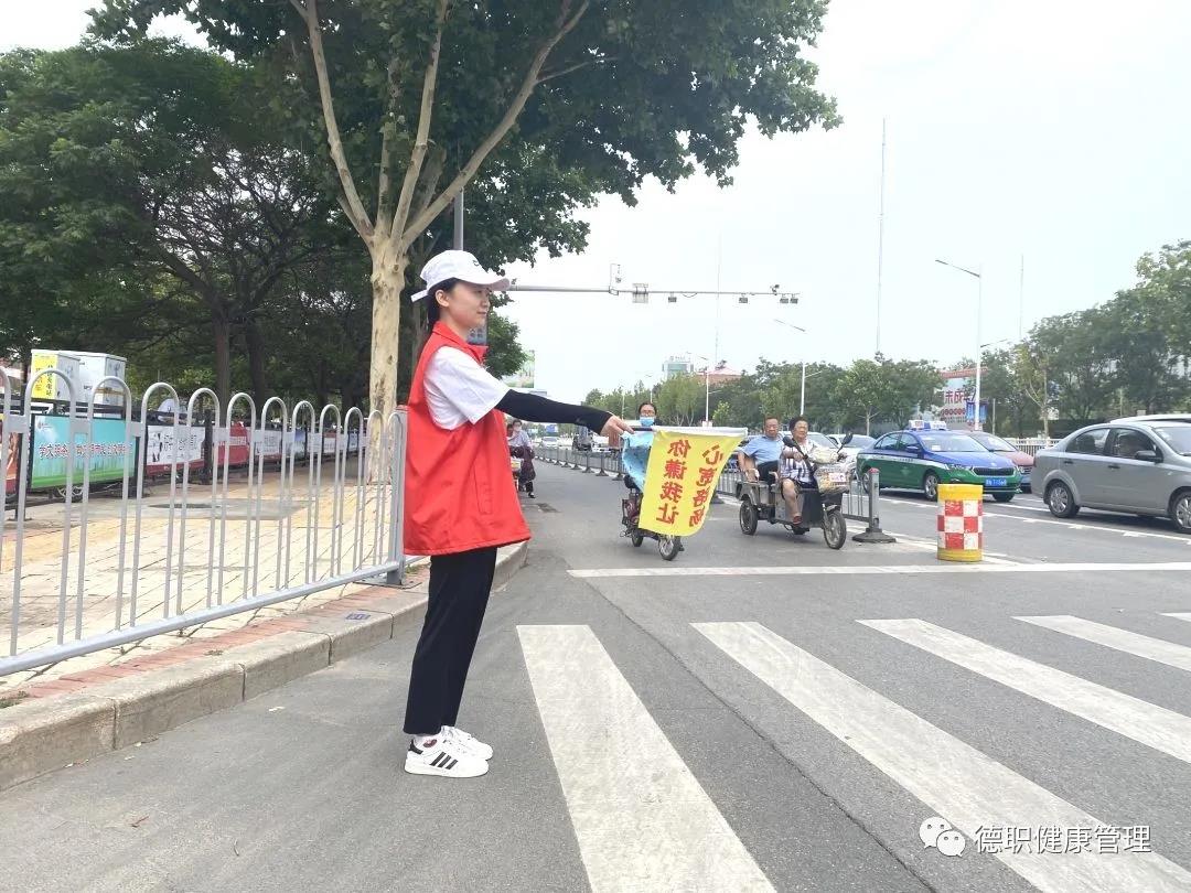 在民警带领下,同学们前往交通路口,积极引导行人和非机动车自觉遵守红绿灯信号,有序通行,对乱闯红灯、不走人行横道等不文明交通行为予以制止和劝导。