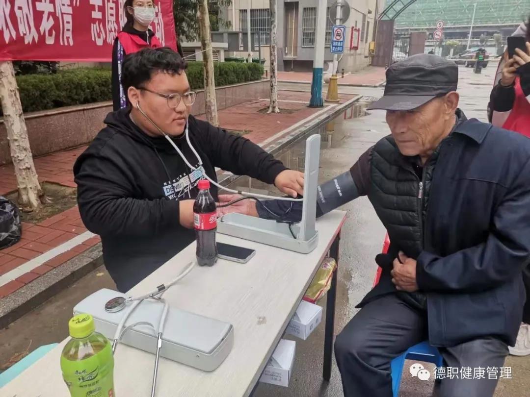 beat365志愿者发挥专业优势,为社区老人测量血压,发放健康手册,讲解健康知识。