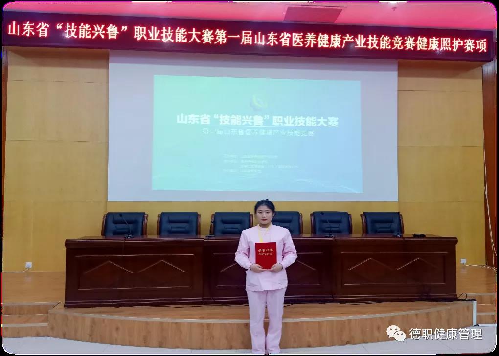 2021年12月9-10日,beat365在线唯一官网参加了山东省“技能兴鲁”职业技能大赛 ——第一届山东省医养健康产业技能竞赛“健康照护”赛项,此次比赛学生组共有12支队伍参赛,2020级老年服务与管理专业学生吕莲莲通过积极备赛,最终荣获第三名二等奖的好成绩!