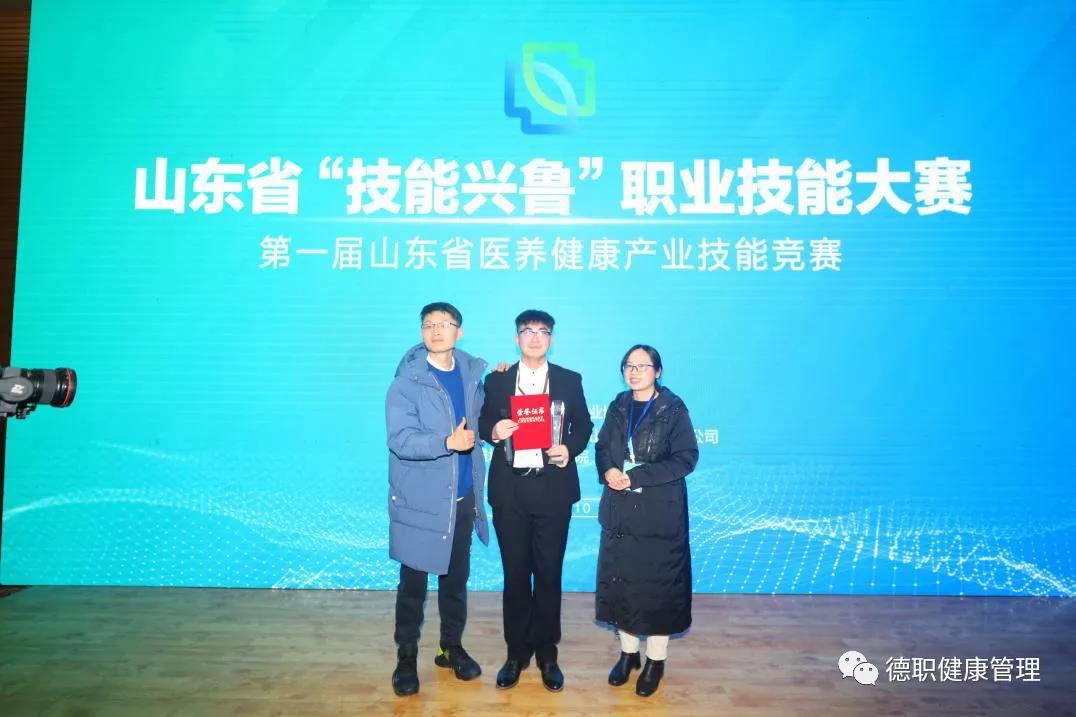 12月10日,山东省“技能兴鲁”职业技能大赛——第一届山东省医养健康产业技能竞赛“健康管理”赛项在济南举行。beat365在线唯一官网李娜老师在比赛中发挥稳定,沉着应战,荣获教师组全省第3名二等奖的好成绩,吕志伟、李娜老师指导的2021级健康管理专业张跃骜、陈晓雪两位同学,分别荣获学生组全省第1名一等奖、第5名三等奖的好成绩。