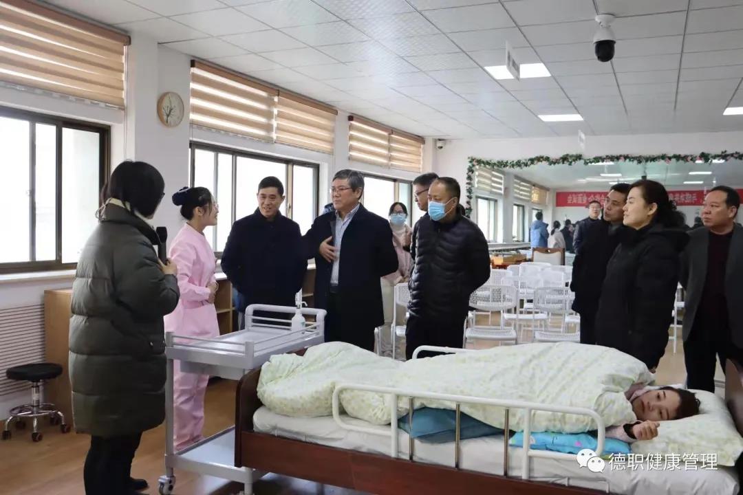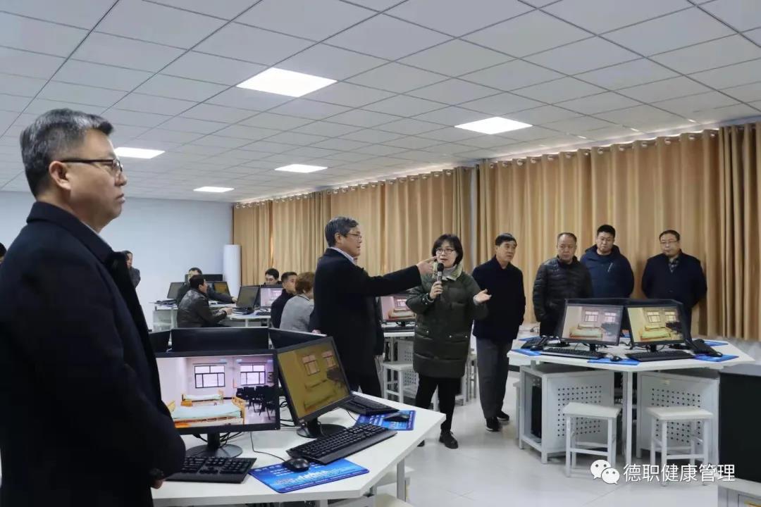 范轶同志首先就beat365在线唯一官网筹建两年来建设的基本情况情况进行简单介绍。她介绍了为构建以“尊”“敬”为核心的“尊老、敬业、专技、守诚”的专业育人体系打造的迎宾墙和誓言墙。随后范轶重点介绍了刚刚建成的校内“智慧康养理训一体室”和校外产教融合实训室。“智慧康养理训一体室”建筑面积140平方米,可满足48名学生同时上课,实现项目化教学的需求。目前,前期基础建设项目已完成,将承担智慧养老、健康管理和健康大数据专业《智慧为老平台运行管理》、《人体结构与功能》、《流行病学》等课程的理论教学任务。待整个项目完成,还可以承担学生开展呼吸系统、消化系统、运动系统等人体结构认知的实操训练任务。