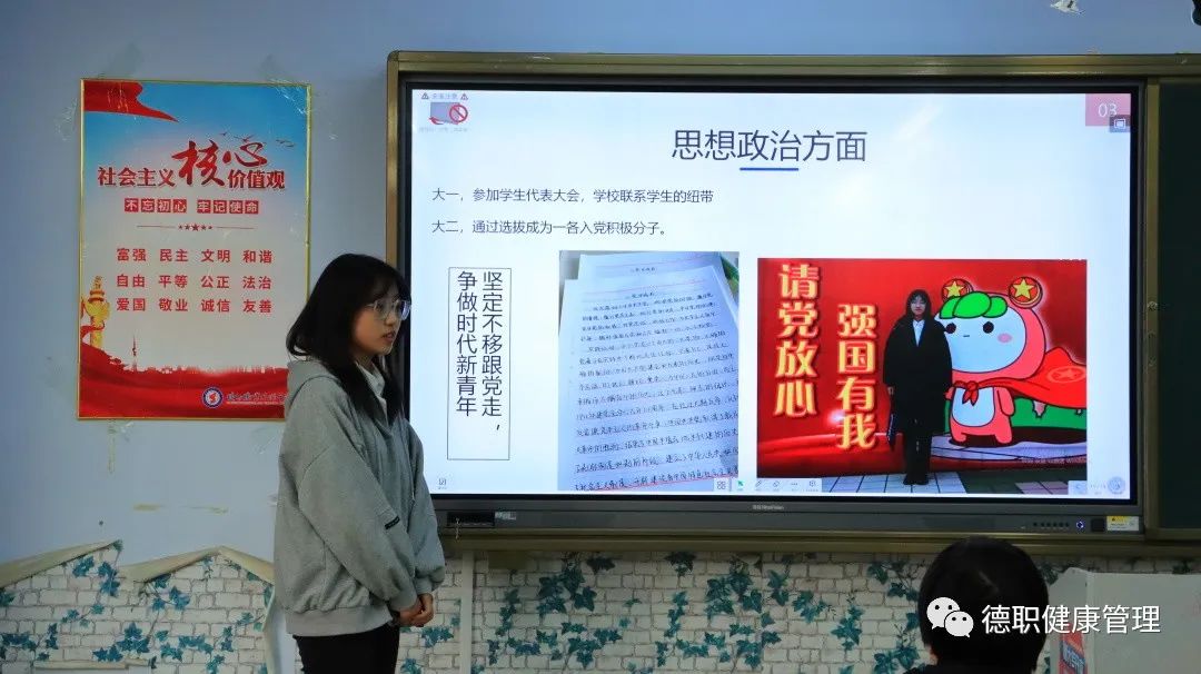 六位国家奖学金候选学生通过PPT展示、现场演讲的方式,在思想道德、专业学业、科技竞赛、工作成绩、创新能力、社会实践等方面,对其在校期间的学习成长历程作了详细介绍,展示了新时代大学生良好的精神风貌,得到了老师的肯定。