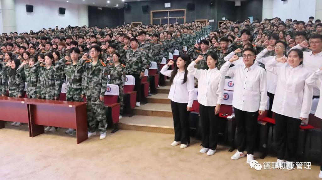 最后,全体新生起立,在新生代表孟祥旭同学的带领下,庄严宣誓,“我自愿为人民健康事服务,崇尚科学,传承博爱。遵守行为规范保守患者秘密;佑护生命尊严,维系健康之美……”