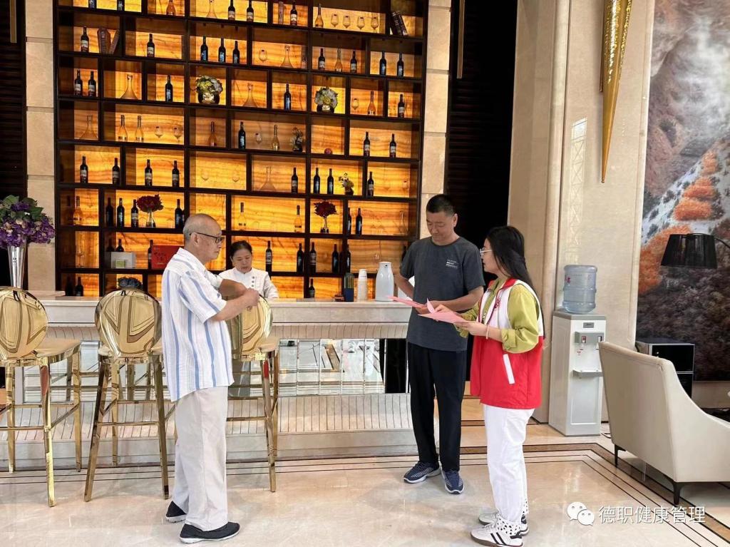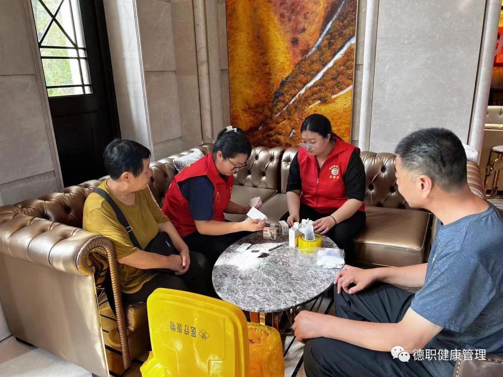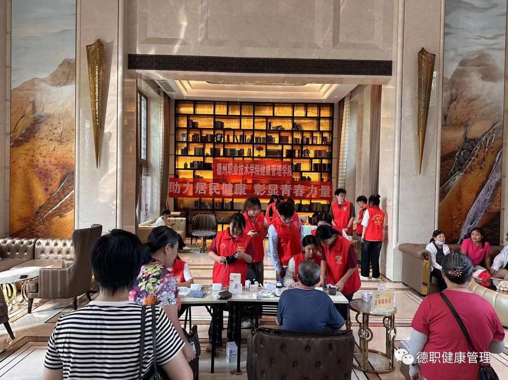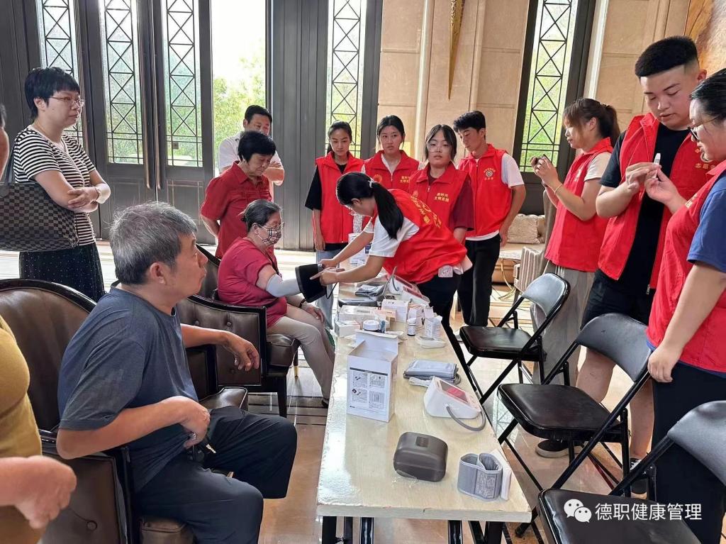 活动现场中,德馨社区的居民闻声纷纷赶来测量,beat365志愿者们耐心地为其逐个测量血压、血糖、血氧,了解其身体健康状况。测完后,志愿者们根据居民的血压等情况,向血压偏高的居民提出了指导建议,并提醒居民们注意健康饮食,发现头晕不适等症状的要及时到医院就医。在为居民测量血压、血糖的同时,志愿者还向居民科普健康知识,提高老年人对于高血压、高血糖等疾病的预防意识,引导老年人养成健康的生活习惯。
