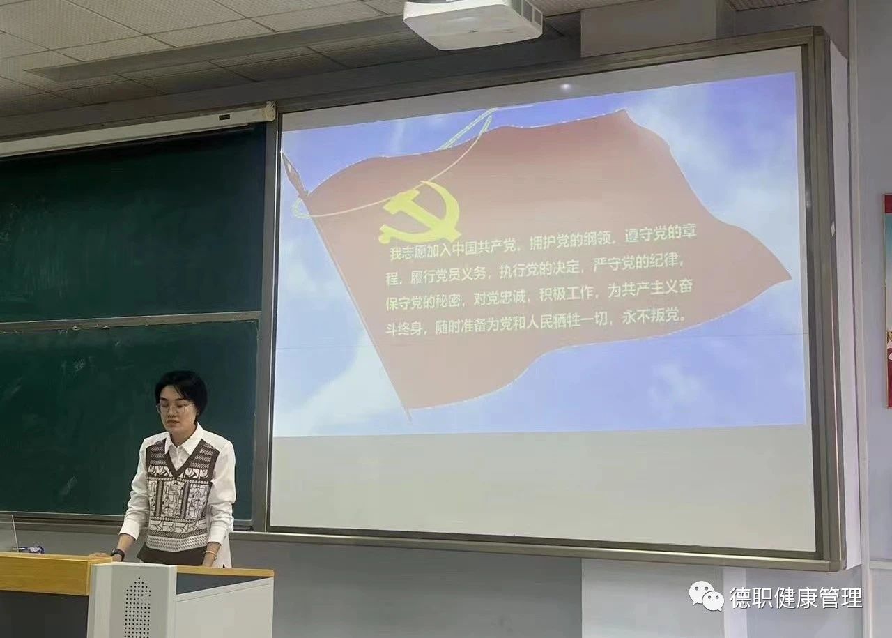 活动伊始,所有入党积极分子在领誓人路遥老师的带领下,面向党旗、举起右拳,庄严宣誓:“我志愿加入中国共产党,拥护党的纲领,遵守党的章程,履行党员义务,执行党的决定,严守党的纪律......”