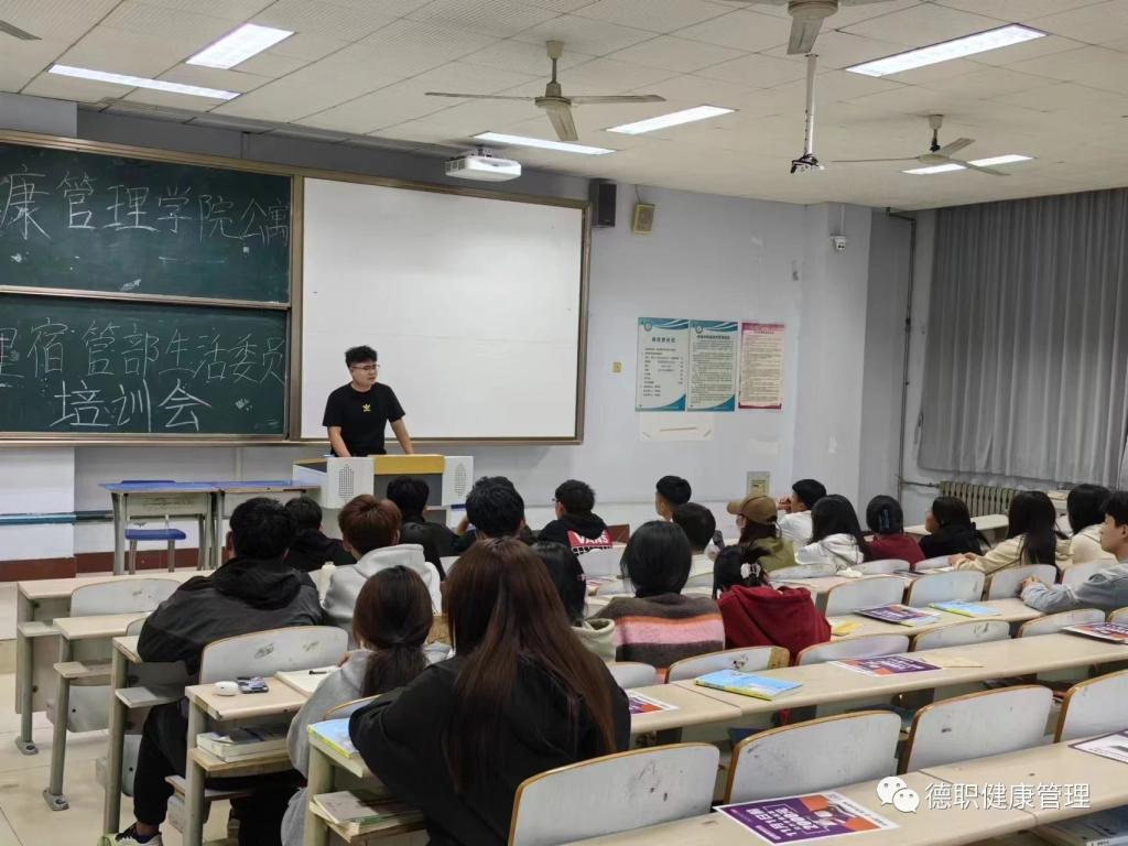 会上,宿管部部长从生活委员的职责,学校对宿舍管理的规定,违纪处理,宿舍卫生,作息时间,请假流程,报修流程,退寝换寝等多方面进行了详细的介绍,使生活委员更加了解自己的职责以及公寓相关规定。