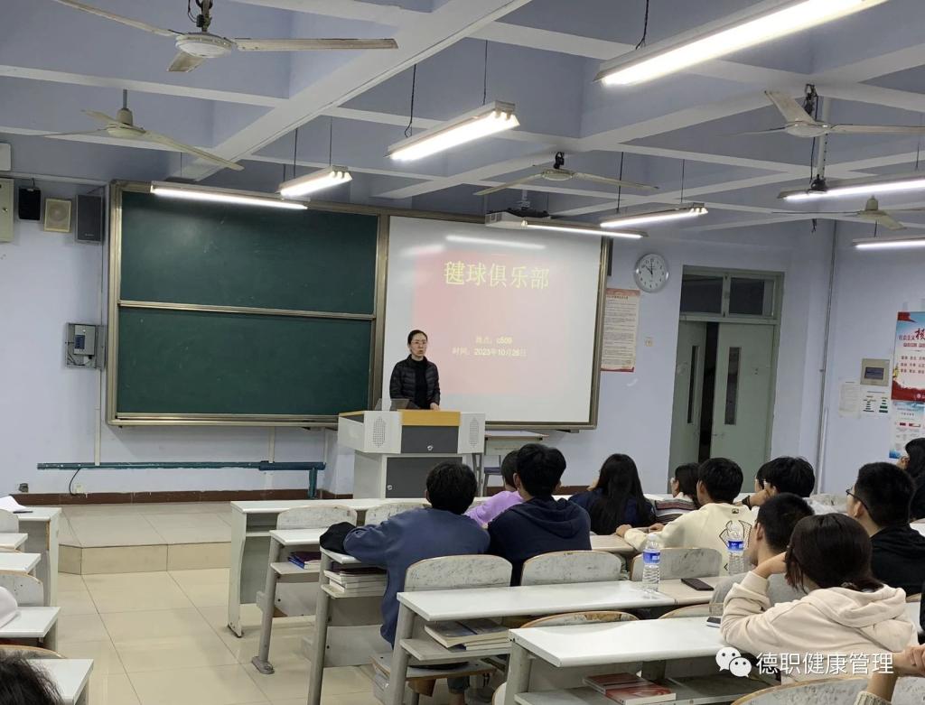 10月26日,第二次活动,指导老师赵丽老师与同学们见面,向同学们介绍了社团的由来以及毽球的历史。希望可以让同学们更近一步了解毽球这项运动。随后以观看视频的形式让大家学习。