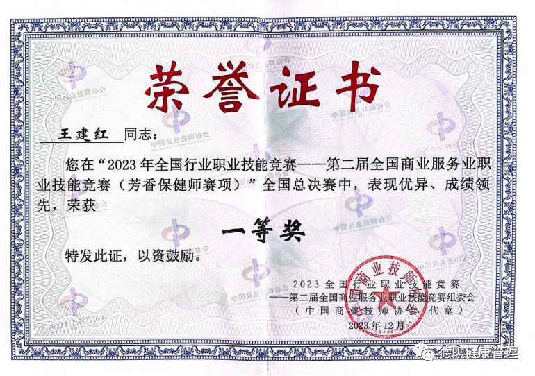 近日,2023年全国行业职业技能竞赛——第二届全国商业服务业职业技能竞赛芳香保健师赛项总决赛在河北雄安新区举办,beat365在线唯一官网王建红老师荣获该赛项总决赛一等奖。