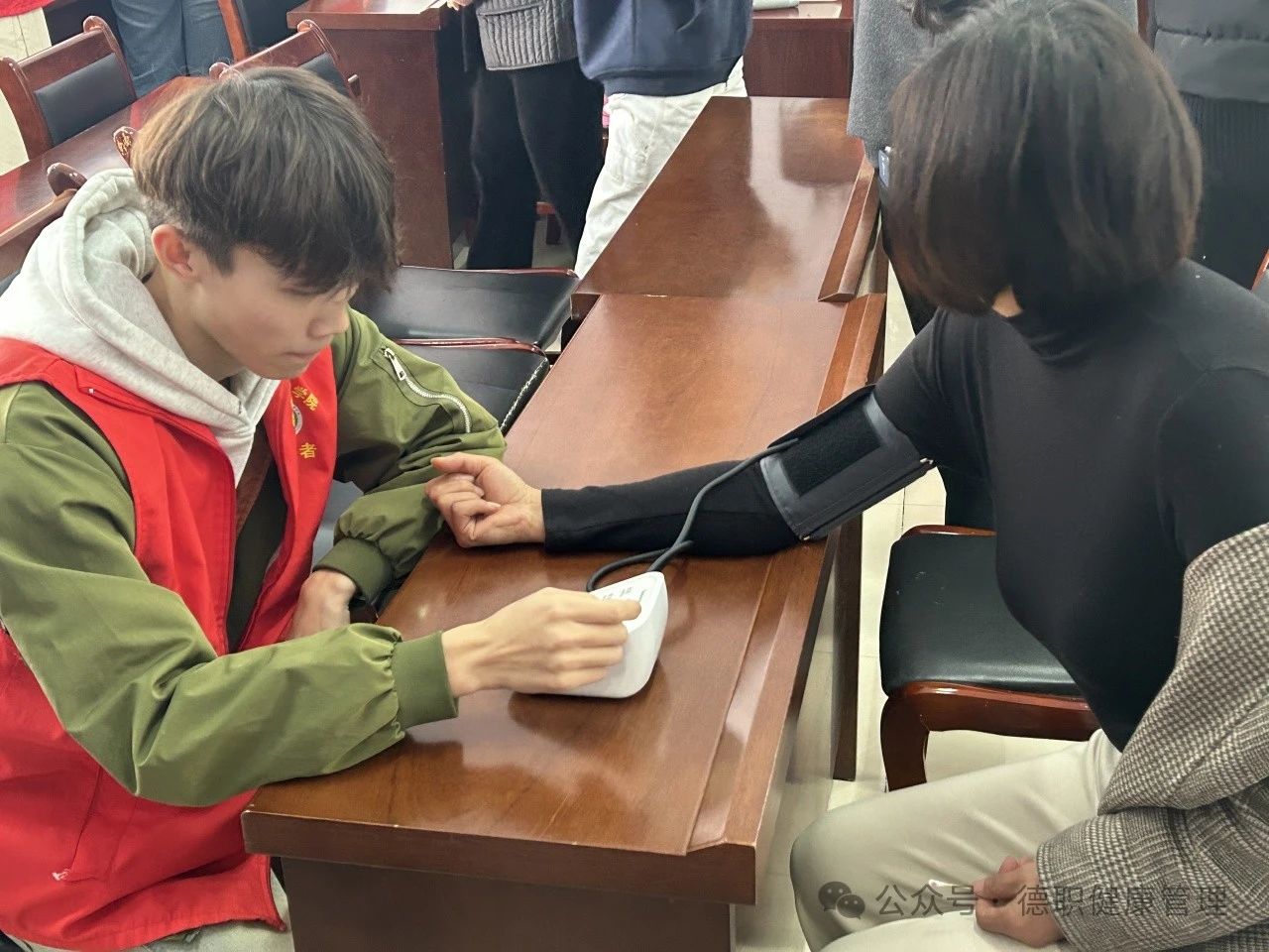 在义诊环节,志愿者们分组进行血压测量、健康知识普及等活动,为居民免费测量血压并普及健康知识,使居民们对高血压与低血压的症状、预防方法和如何减缓高血压发展有了更多的了解,同时志愿者们提升了自身临床技巧与应对能力。在实践活动中,志愿者们以饱满的热情,耐心地回答,专业的知识收获了居民的一致好评。