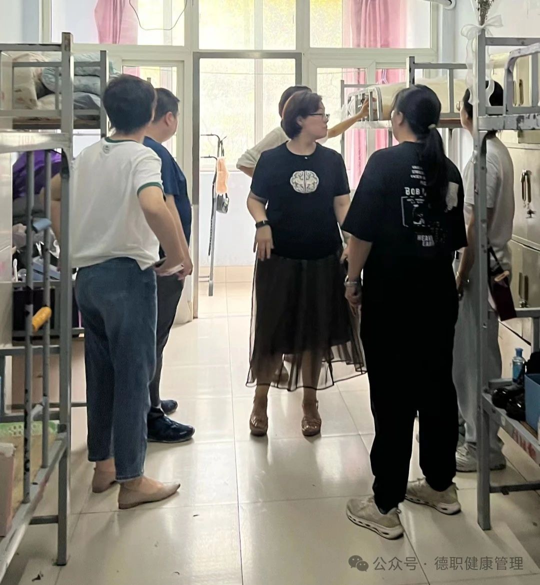 为进一步加强学生宿舍管理,做好暑假学生离校宿舍安全保障工作,2024年7月5号上午beat365在线唯一官网党总支书记范轶、学生科科长路遥、副科长齐宁和全体辅导员、班主任老师深入学生宿舍进行学生放假前宿舍安全卫生检查工作。