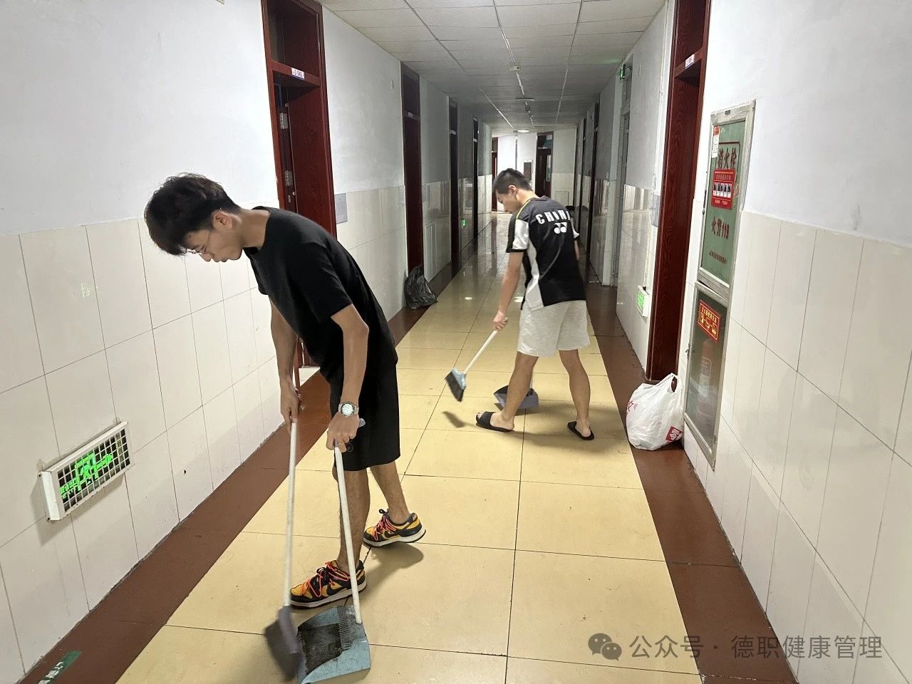 宿管部成员对宿舍的水、电、门窗等设施进行离校前最后一次检查,消除可能存在的安全隐患,检查完毕后为每个宿舍贴上封条。并集中打扫了宿舍大厅与走廊的卫生,确保宿舍环境卫生干净整洁。