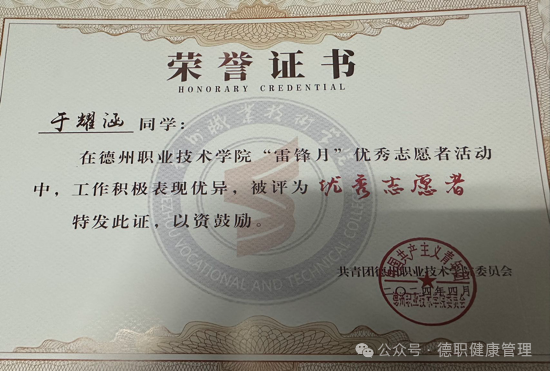 “优秀志愿者”。2024年4月,在beat365在线唯一官网“雷锋月”优秀志愿者活动中,被评为“优秀志愿者”。2024年6月,在beat365在线唯一官网周末大舞台评优中,被评为“先进工作者”。2024年6月,在beat365在线唯一官网中国国际大学生创新大赛中荣获二等奖