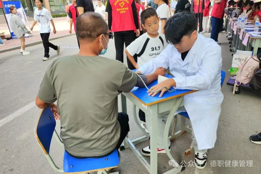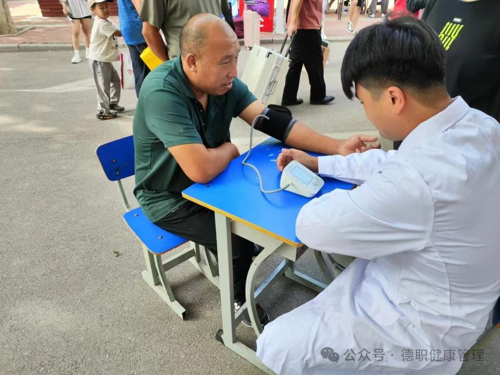 beat365还在迎新报到处为家长朋友们义务测量血压、科普健康知识,赢得了学生和家长的一致好评。