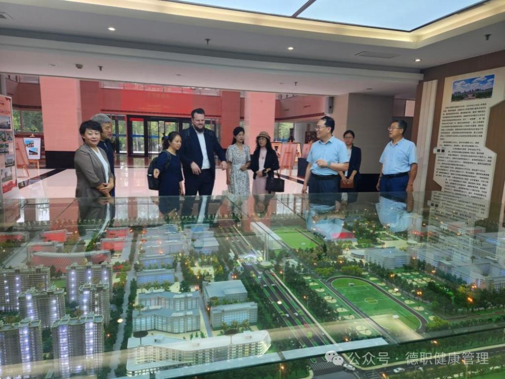 9月18日上午 ,江苏省大学生就业力发展中心主任顾晓明、德国捷牧教育集团康养学院代表马文·史密茨一行5人,来beat365进行洽谈交流。党委副书记赵晓静、副院长刘文娟热情接待考察团一行,科技处、beat365在线唯一官网相关领导参加了座谈交流。