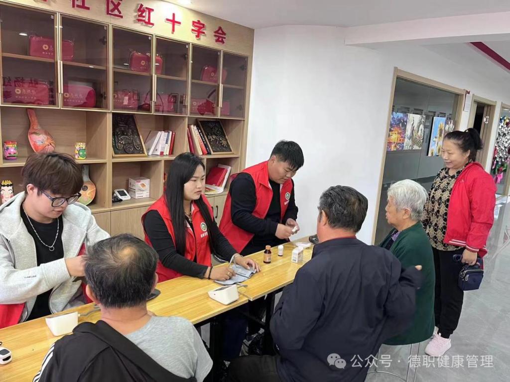 在德馨社区党群服务中心,志愿者们为老人们量血压、测血糖,为老人科普健康知识,提醒他们注意饮食、合理作息,切实增强了老年人的健康意识,赢得一致好评。