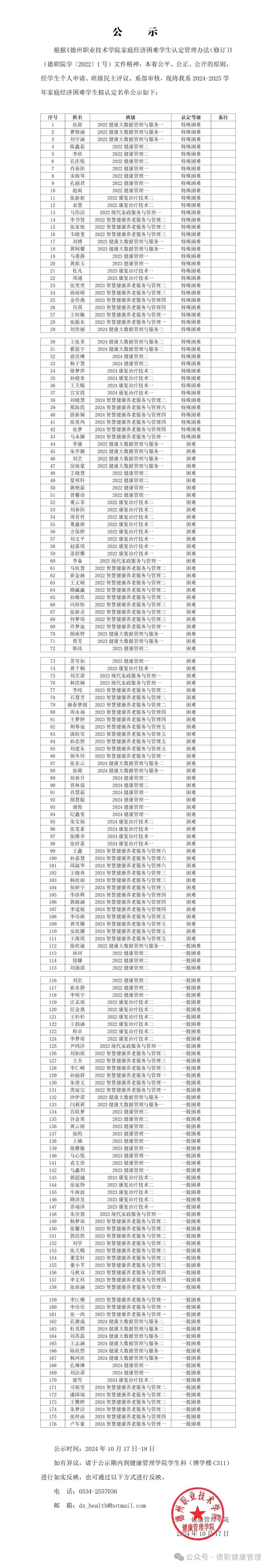 beat365在线唯一官网2024—2025学年家庭经济困难学生认定公示