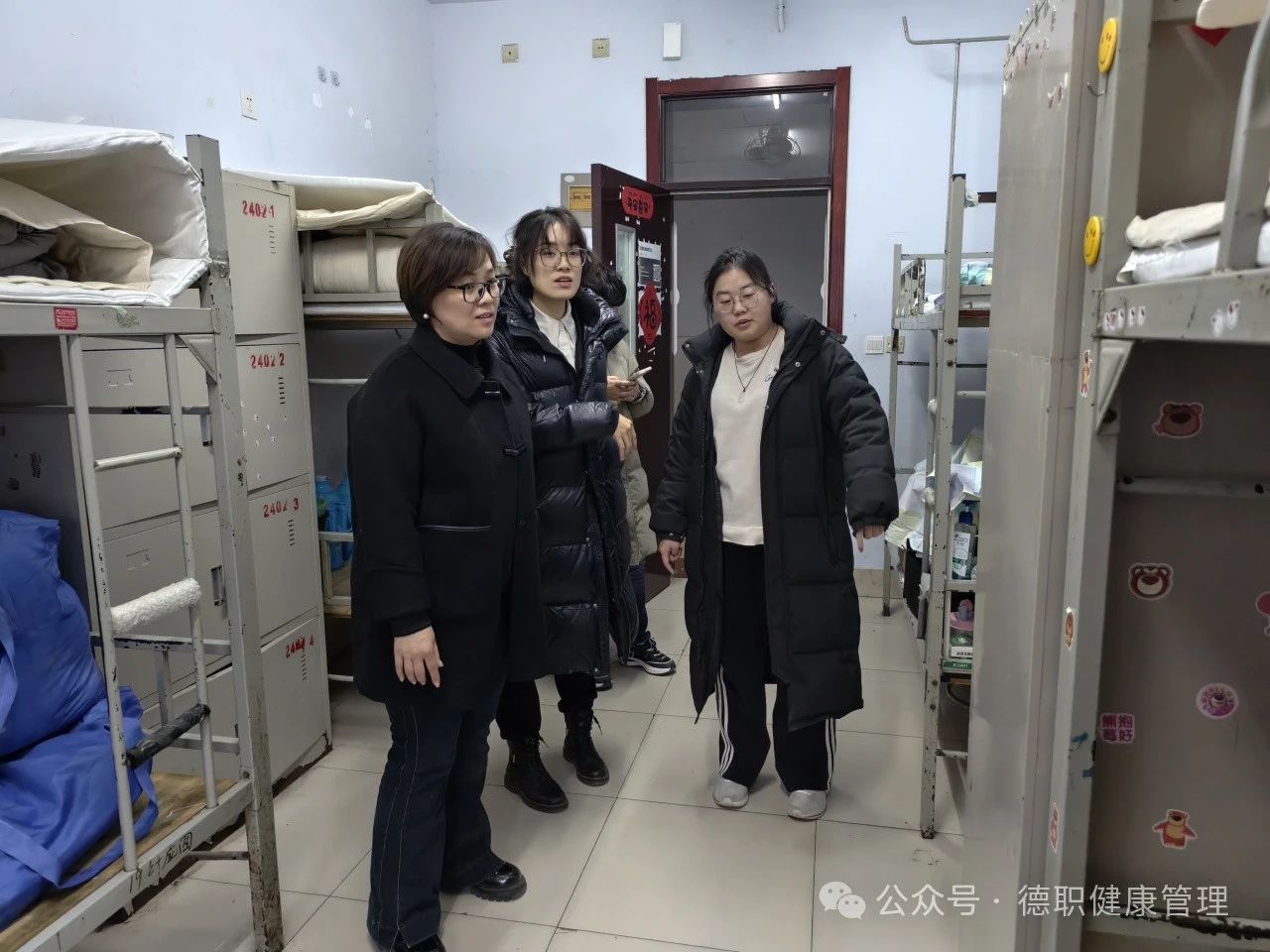为切实加强校园安全管理,确保寒假期间学生宿舍的安全稳定,2025年1月9日,beat365党支部书记范轶带领辅导员深入宿舍开展了宿舍安全卫生大检查。