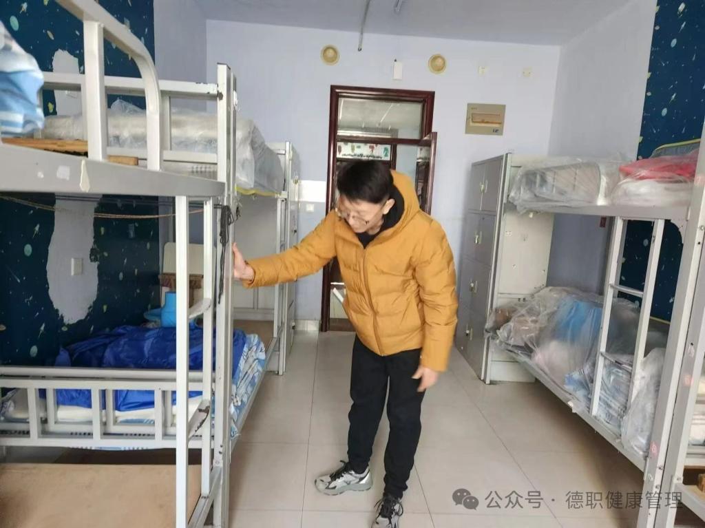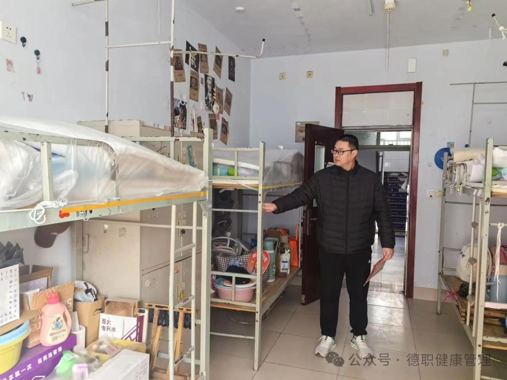 为进一步加强beat365在线唯一官网公寓的安全管理,营造安全、稳定、文明、和谐的住宿环境,2025年2月14日,beat365党总支书记范轶带领全体辅导员与班主任深入宿舍开展了公寓安全大检查。