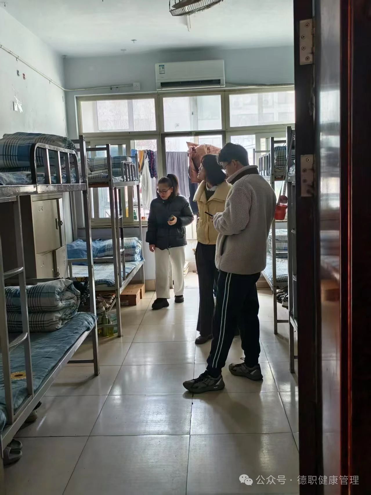学期伊始,为优化宿舍环境、加强校园文明建设,beat365在线唯一官网开展宿舍内务提升工作。3月6日,beat365在线唯一官网学生科科长路遥、副科长齐宁带领 24 级辅导员深入宿舍展开卫生及内务检查。检查过程中,科长与辅导员们逐间查看宿舍,涵盖地面清洁、物品摆放、床铺整理等多方面,引导学生养成良好习惯,营造舒适健康环境。