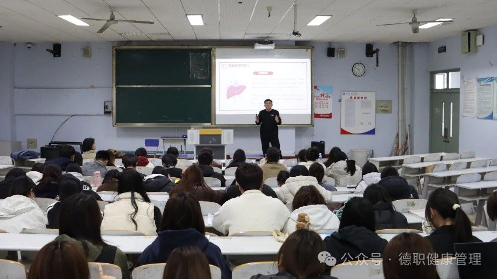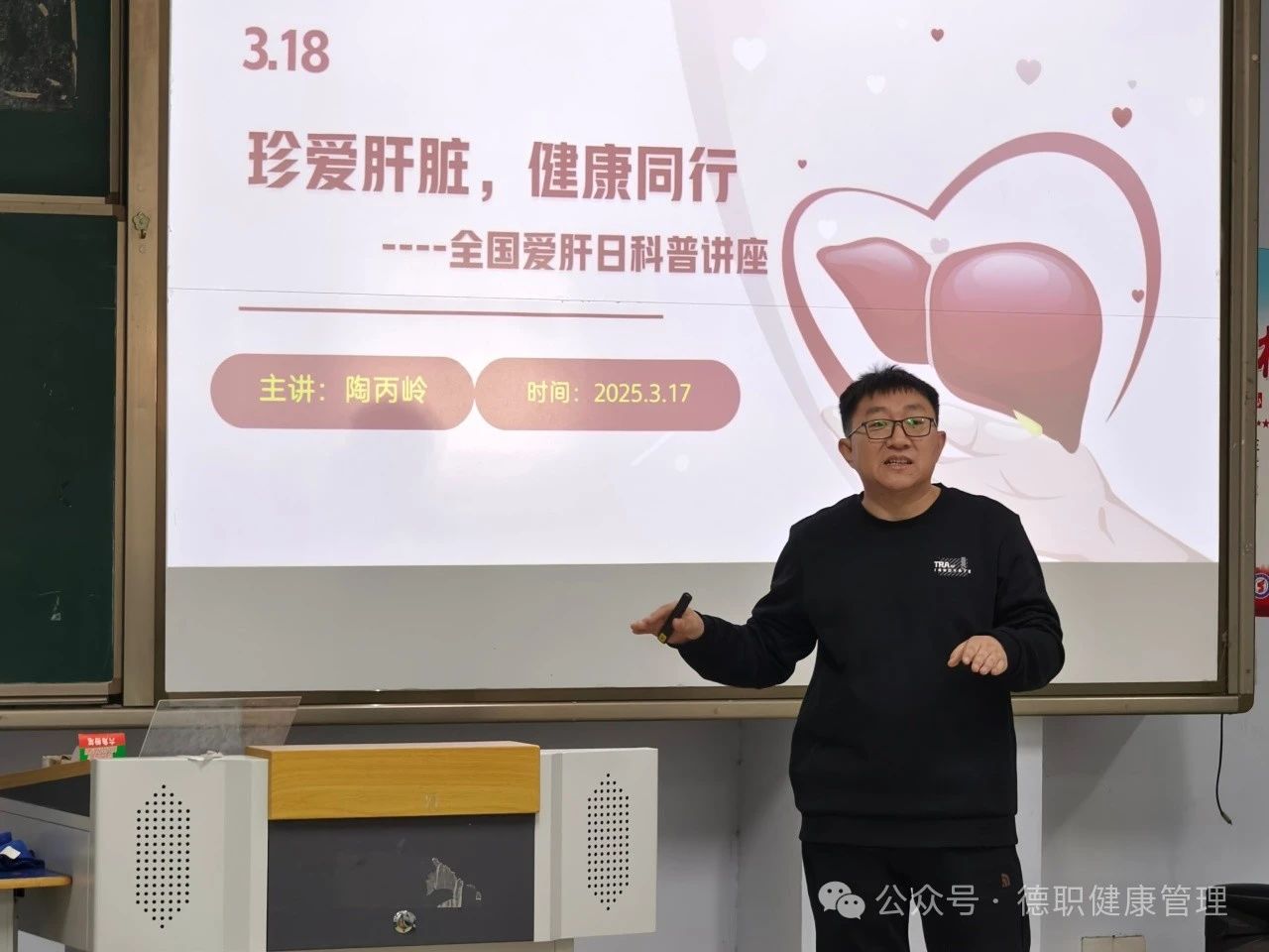 3月17日,beat365在线唯一官网特邀临床医学专家陶丙岭教授开展"爱护肝脏,守护健康"专题讲座。值全国爱肝日(3月18日)前夕,百余名师生参与学习。