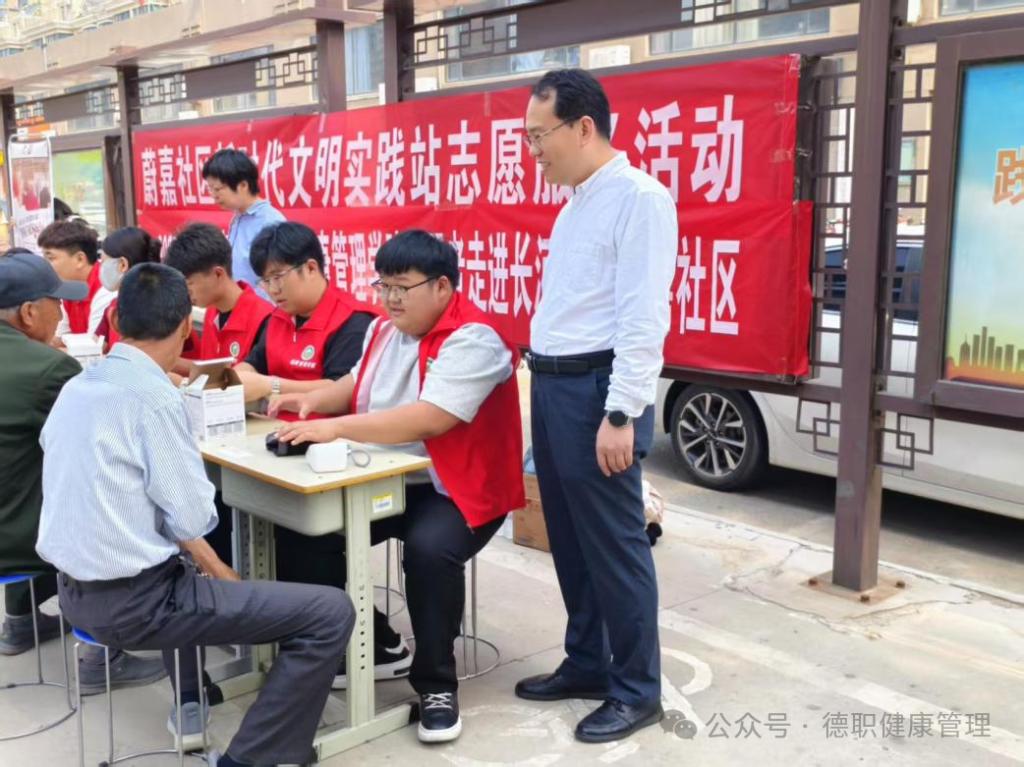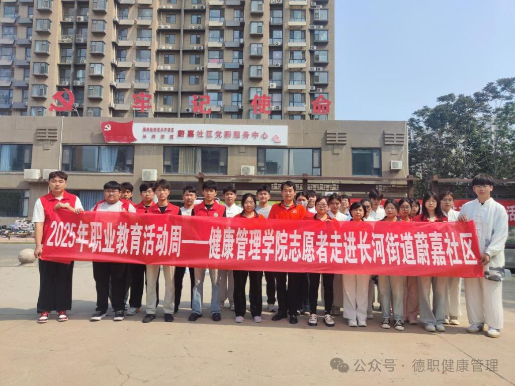 以“一技在手,一生无忧”为主题的2025年beat365在线唯一官网职业教育活动开启, 5月14日上午,beat365在线唯一官网教师、学生志愿者联合五季世家到蔚嘉社区开展进社区送健康服务活动。
