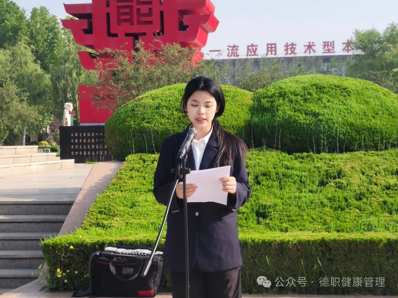 升旗仪式后,学生代表牛泽雯登台发言:“在这庄严的升旗仪式上,看着五星红旗高高飘扬,我们不禁想到大国工匠们。他们以专注和执着,在各自领域默默奉献,将每一项工作做到极致。他们的匠心精神,是我们学习的榜样。对于我们beat365在线唯一官网的学子来说,要把这种精神融入到日常学习中,努力学好专业知识,提高专业技能。将来,我们要在健康管理领域发光发热,以匠心守护人们的健康,为实现健康中国的目标贡献自己的力量。”