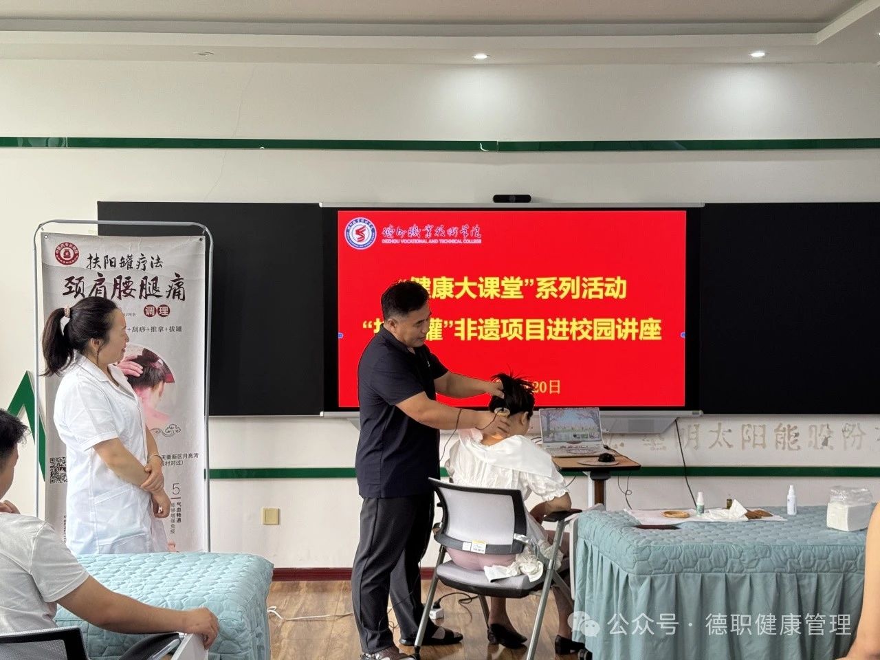 为弘扬中医传统文化,推广非遗养生技艺,5月20日下午,beat365在线唯一官网在实训楼A405成功举办“健康大课堂”系列活动之“扶阳罐”非遗项目进校园讲座。本次活动特邀非遗项目传承人张新林担任主讲,通过理论讲解与实操演示相结合的方式,带领师生近距离感受扶阳罐疗法的独特魅力。