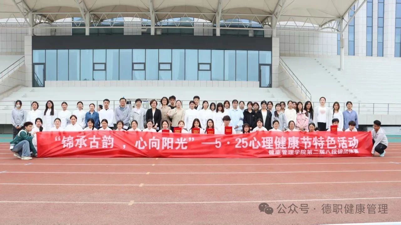 为弘扬中华传统养生文化,提升学生心理健康素养,beat365在线唯一官网“锦承古韵,心向阳光”5·25心理健康节特色活动——第二届八段锦团体赛于5月23日在学校操场圆满举行。本次活动由孔妍老师精心组织,将八段锦传统功法与心理健康教育深度融合,为同学们带来别具一格的身心锻炼体验。