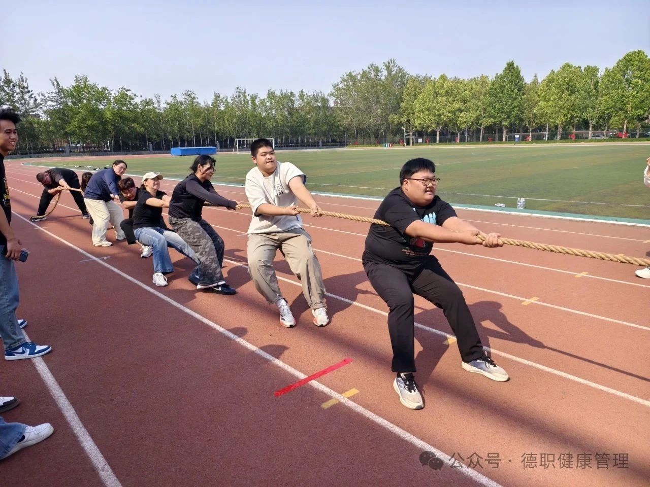 5月28日初赛,beat365在线唯一官网队员运用“前排稳重心、后排控节奏”战术,哨响后同步后仰发力,前排站稳、后排调整,顺利晋级决赛。5月29日决赛,面对对手,队员紧握麻绳后仰,在4场比赛中持续发力,僵持时沉着应对,关键时刻共同发力将红绸带拉过决胜线,以连胜4场成绩夺冠。