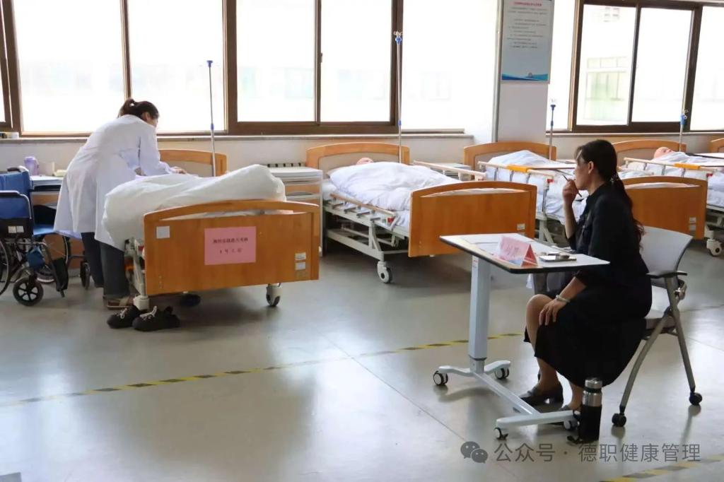 考核现场,老师们身着白大褂,模拟真实场景开展考核。内容包括床椅转运、轮椅进出模拟电梯、上下模拟坡道、跨越门槛,过程中多次变换患者体位。老师们操作精准流畅,无论是角度把控还是力度调节都恰到好处,以规范专业的操作流程和沉稳熟练的实践表现,充分彰显出扎实深厚的专业素养与丰富娴熟的临床经验。