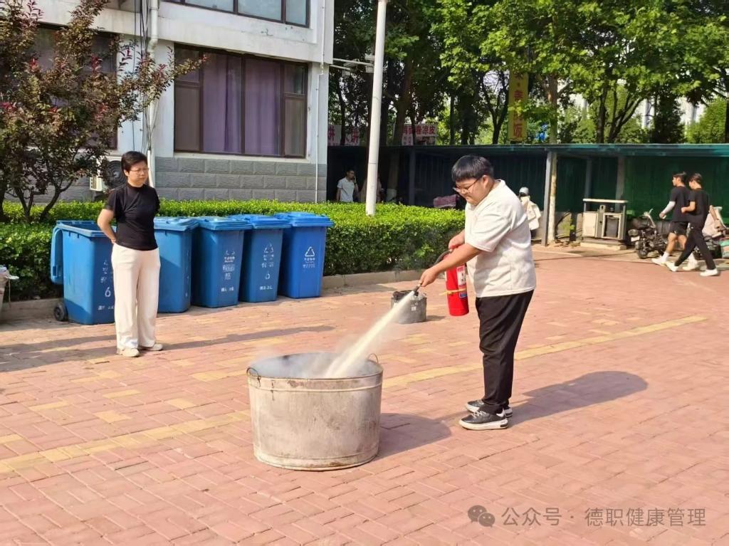 随着警报声骤然响起,宿舍安全疏散演练迅速展开。同学们保持冷静,即刻按照预定疏散路线,用手或衣物捂住口鼻,弯腰俯身,沿着楼梯快速有序地撤离宿舍楼,顺利抵达安全区域集合。随后,现场通过细致讲解和操作示范开展灭火器使用教学,同学们熟练掌握了“提、拔、握、压”的操作要领,学会了扑灭初起火灾的正确方法,进一步强化了消防安全应急技能。
