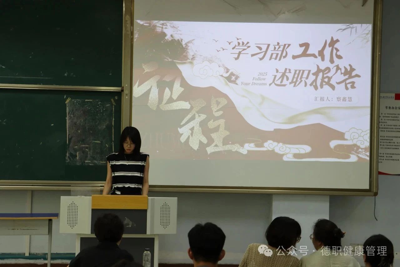 会上,学生会干部围绕工作回顾、未来展望、具体措施展开述职。他们用数据和案例总结2025年上半年的工作成果,深入分析现存问题,从优化协作机制、创新工作方法等方面制定落实方案,充分体现清晰的工作思路与务实作风。