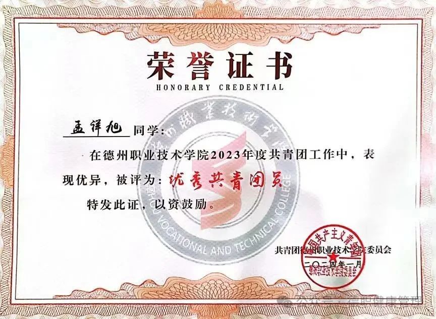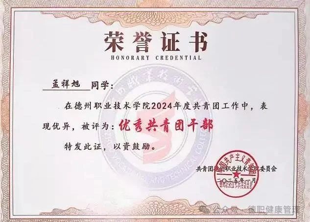 5.2024 年在beat365在线唯一官网共青团工作中,被评为“优秀共青团干部”;