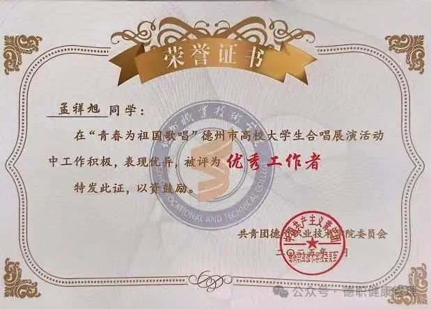12.2024年在《青春为祖国歌唱》中被评为“优秀工作者”;