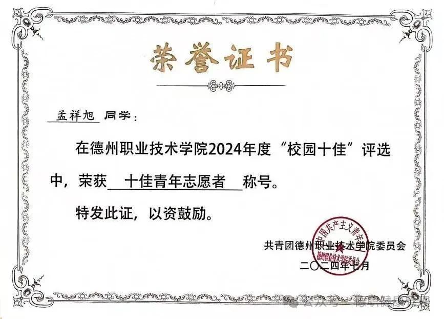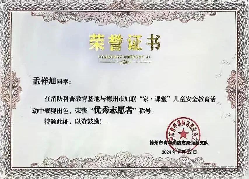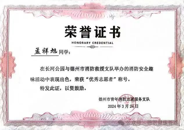 9.2024年荣获“德州市消防优秀志愿者”;