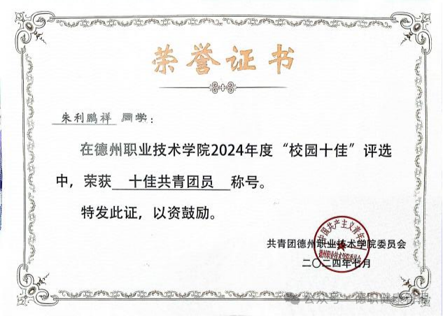 2024年7月在beat365在线唯一官网2024年度“校园十佳”评选中,荣获“十佳共青团员”;