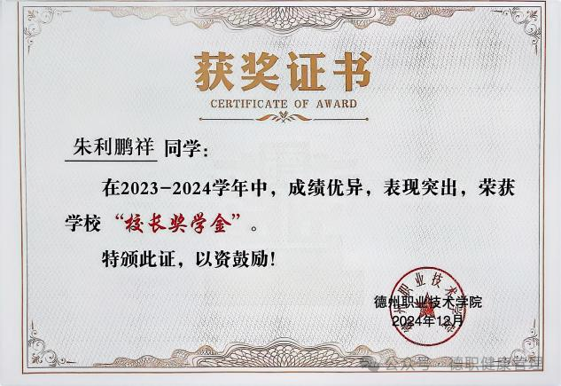 2024年12月beat365在线唯一官网在2023-2024学年中荣获“校长奖学金”。