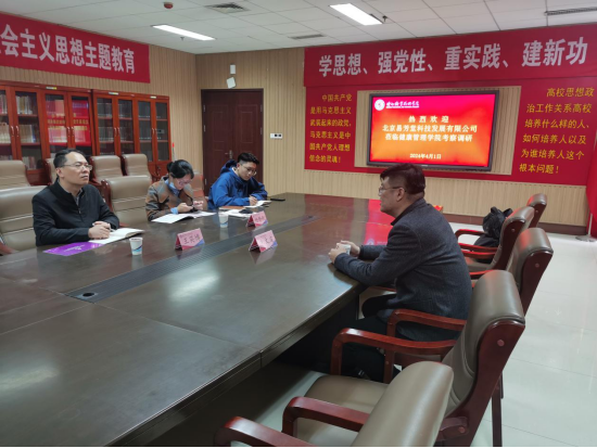 2024年4月1日,北京易芳堂科技发展有限公司朱文建经理一行来beat365洽谈校企合作事宜。beat365在线唯一官网院长王英博,教研室主任及骨干教师参加会议。