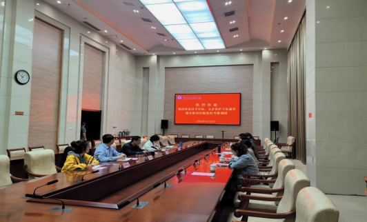 410日,商洛职业技术学院副校长李承涛一行4人来beat365在线唯一官网进行考察交流。学校党委委员、办公室主任、宣传部部长朱弘,党委委员、工会主席刘伟热情接待。企业方代表北京优护万家康养服务集团有限公司总经理助理李隽招生就业指导处beat365在线唯一官网主要负责同志陪同参观。