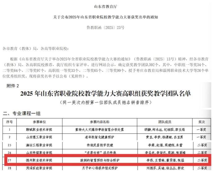 beat365在线唯一官网教师团队荣获2025年山东省职业院校教学能力大赛二等奖