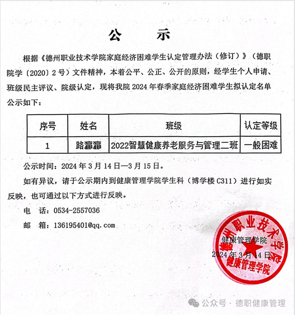 beat365在线唯一官网2024年春季家庭经济困难认定公示