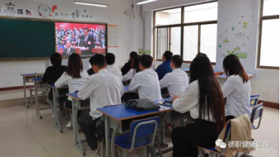 开幕直播中,同升国旗、同唱国歌。师生聚精会神、边听边记,仿佛置身于大会现场,感受到了团结、和谐、奋进的会场气氛,掌声一次次响起,表现出了对党的无限热爱和对党的二十大的热切期待。
